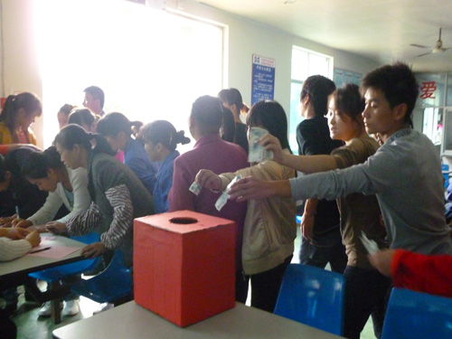 11月1日,浙江东鑫纺织有限公司充满了爱的氛围。公司员工自发组织为困难员工刘小五献出一片爱心。上至公司总经理、常务副总、各部门经理,下到普通车间工人、清洁阿姨,都纷纷慷慨解囊,积极踊跃捐款,气氛显得异常感人。